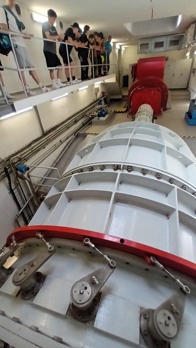 Na vlastní oči jsme postupně viděli čištění česlic, nečekaně rozsáhlé podzemní prostory s horizontálním turbosoustrojím s přímoproudou Kaplanovou turbínou o průměru oběžného kola 3,6m, a nakonec také transformátory a rozvodnu, ze které je vyrobená energie přímo dodávaná do distribuční soustavy.