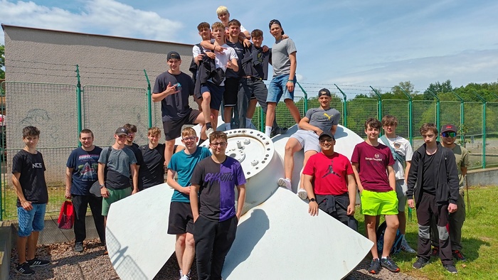 Za krásného počasí jsme se plní nových informací rozloučili společnou fotografií u původního kola turbíny a spěchali do školy na oběd.