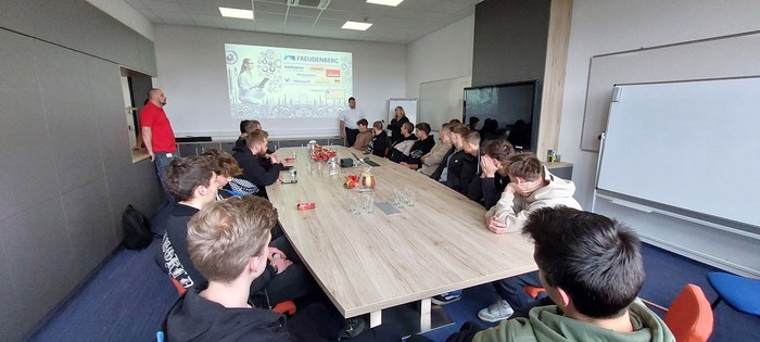 Exkurze byla zahájena v zasedací místnosti, kde studenty přivítali zástupci firmy. Následovala prezentace zaměřená na historii společnosti, její vývoj a současné postavení na trhu. Byly představeny hlavní produkty, služby a firemní benefity, které firma Freudenberg nabízí, včetně využití moderních robotických technologií.