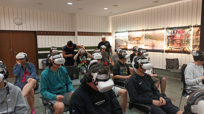 V informačním centru jsme kromě informačních tabulí měli příležitost vidět ve virtuálních brýlích 13 minut dlouhý film WaterTour Dlouhé stráně. Jeho shlédnutím jsme pochopili, jak je přečerpávací vodní elektrárna technicky jedinečné dílo, jak probíhá cesta vody z horní nádrže přes nitro hory až na lopatky turbín. Pomocí dechberoucí virtuální reality jsme se ocitli vysoko nad napuštěnou horní nádrží, s výhledem na hřebeny Jeseníků i nedaleký Praděd. Postupně jsme se se dostali i do útrob 1,5 km dlouhého vodního přivaděče o průměru 3,6 m mezi horní a dolní nádrží, do strojovny transformátorů, zevnitř jsme si prohlédli turbínu i generátor a imaginárně se projeli výtahem vybudovaným ve skalním masivu mezi elektrárnou a horní nádrží. Zajímavá byla také animovaná část s 3D modelem, která jednoduše popisuje princip fungování elektrárny i její význam pro energetiku. Prohlídku jsme ovládali vlastníma rukama a svůj postřeh si mohli ověřit na několika kvízových otázkách.
