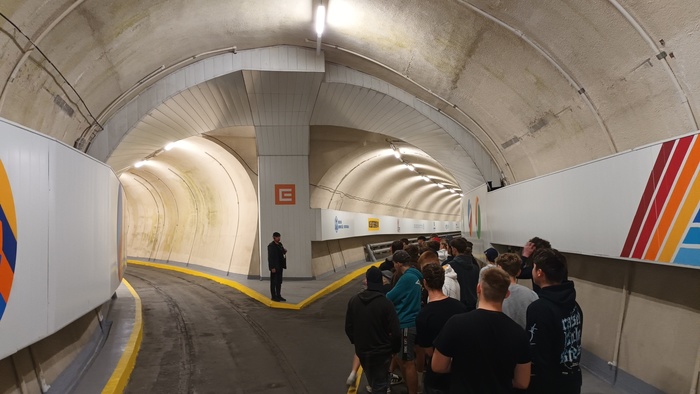 Protože je elektrárna řešena jako podzemní dílo, museli jsme z informačního centra dál pokračovat dlouhým chladným provozním tunelem s barevnými dekoracemi vytesaným ve skále až do rozlehlé turbínové podzemní kaverny, kde se nacházela některá rozměrná zařízení elektrárny.