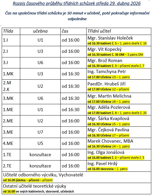 Schůzky rodičů - 29.4.2026
