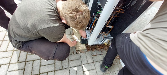 Zvláštní poděkování patří panu Brslínkovi, který nám ukázal praktickou stránku práce servisního technika tepelných čerpadel. Na vlastní oči jsme viděli, jak se provádí údržba, diagnostika a oprava tepelného čerpadla. Tato ukázka nám pomohla prohloubit naše školní znalosti a lépe si představit budoucí pracovní oblast.